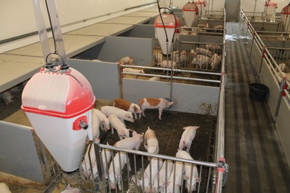 Destete en las instalaciones del Sr. Thomas Kristoffersen en Thisted, ACO Funki ha entregado el equipamiento de corral para 96 corrales de destete así como las tolvas TUBE-O-MAT y 4 sistemas de alimentación.